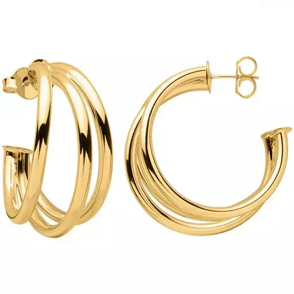 Brinco de argola 3 tubos grande banhado no ouro 18K.